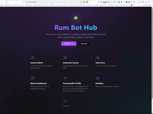 Browser Based alerts for Rumble Streams which include follow, subs, gifted subs, gifted premium subs, rants and even raid! All hand crafted in the cloud plus games, analytics and our Discord Live Alert Tool fully Integrated for ease of use!